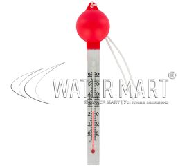 Модель плавающего термометра в комплекте с нейлоновым шнуром, использующаяся для измерения температуры воды в бассейне. Длина: 29 см.