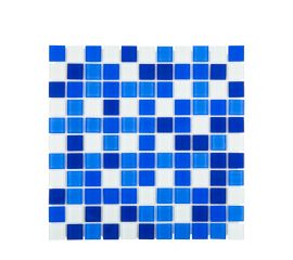 Стеклянная мозаика на сетчатой основе в цветовой гамме «кобальт», темно-голубой и голубой.