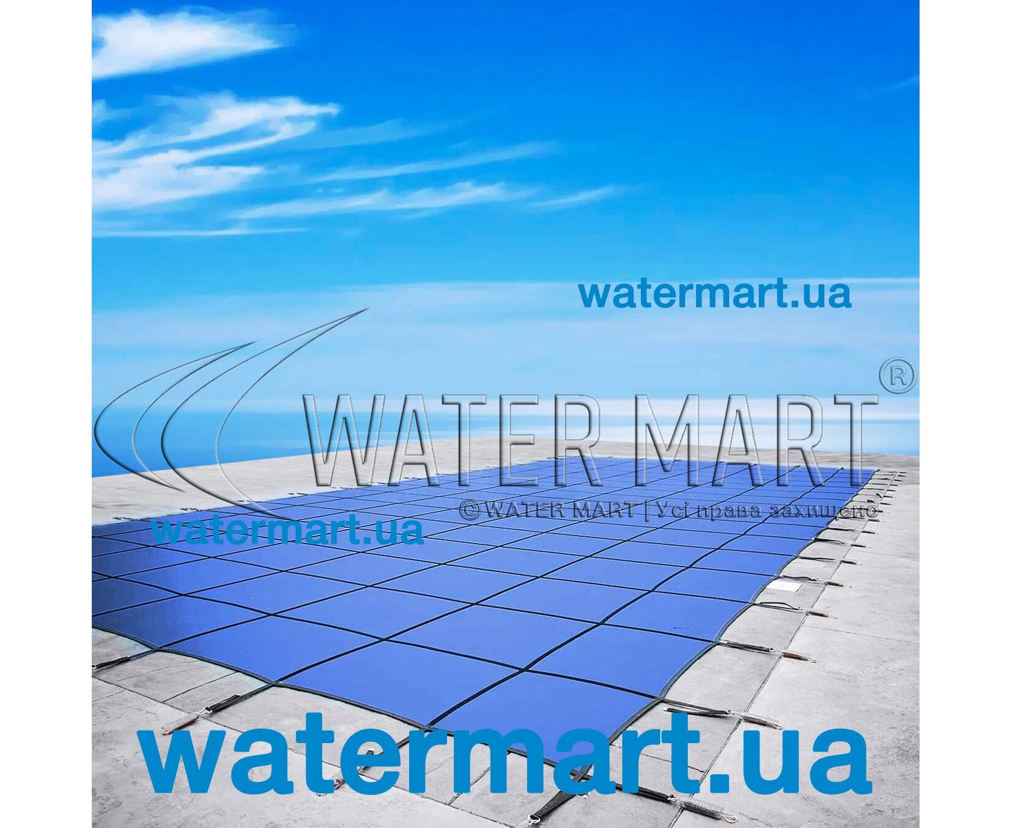 Накрытие Aquaviva Blue – серия бескаркасных всесезонных батутных накрытий синего цвета, применяющихся для безопасного перекрытия открытых плавательных бассейнов домашнего или коммерческого пользования любых форм и размеров. Материал изготовления – экструдированный сетчатый полипропилен (прочный, полностью водонепроницаемый материал, обеспечивающий защиту от загрязнений и воздействия ультрафиолетового излучения; имеет устойчивость к агрессивной среде и химическим препаратам, которые используются для обработки воды в бассейне). Комплектация: анкерные крепления (материал – нержавеющая сталь марки AISI-304L); полипропиленовое покрытие плотностью 165 кг/см³. Может эксплуатироваться при температуре от –30 до +70 °C.