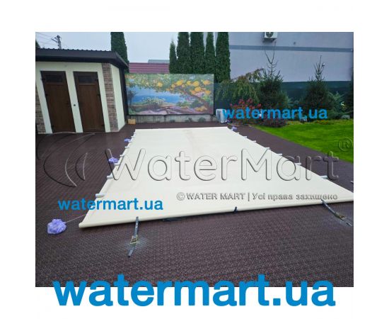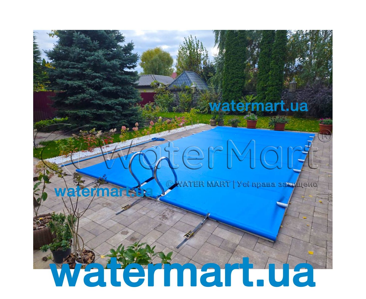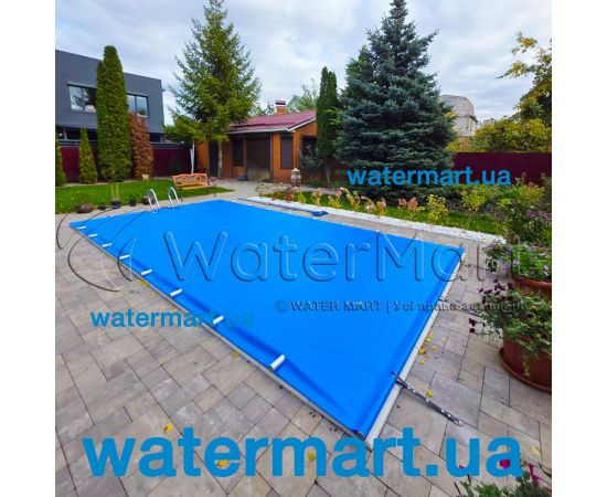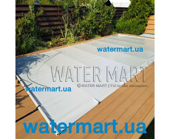 Защитное накрытие Poollock – поливиниловое полотно (ПВХ на основе 100 % PES) в комплекте с ребрами жесткости из алюминия, применяющееся для защиты бассейна от скопления различных крупных частиц загрязнений (листья, ветки и пр.) и осадков. Уменьшает теплопотери, обеспечивает безопасное нахождение у бассейна детей и животных. Изготавливается по индивидуальному заказу, исходя из размеров конкретного бассейна. Максимальные размеры: ширина (max) – 5 метров; длина (max) – 25 метров. Комплектуется удобной ручкой, благодаря чему свернуть/развернуть накрытие может один человек. Поставляется в комплекте с анкерными крепежными элементами, механический привод для сматывания с ручным типом управления. Плотность покрытия – 630 кг/см³. Рекомендуемая температура для эксплуатации – от –30 до +70 °C. Прочность на разрыв – 255 кг / 5 см.