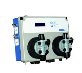 Станция автоматического дозирования и измерения уровня pH и свободного хлора в бассейнах объемом до 500 м³. Производительность: 5 л/ч.