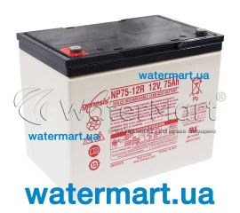 Аккумуляторная батарея AGM со свинцово-кальциевыми пластинами, герметичным корпусом с защитой отпротечек и встроенным клапаном низкого давления. Серия: EnerSys / Genesis NP75-12. Емкость: 75Aч / 12V.