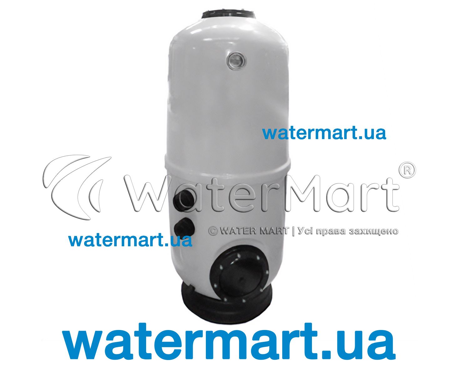 - Оборудован боковым смотровым окном для контроля уровня засыпки, верхним и боковым люками для замены песочного фильтрующего наполнителя
