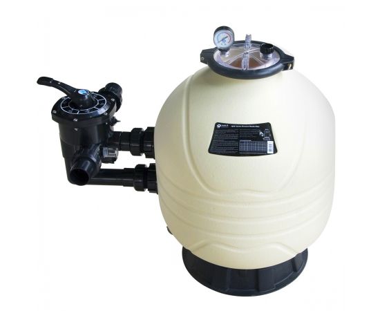 Комплектуется многорежимным управляющим вентилем с боковым типом подключения и манометром для контроля давления внутри фильтровальной емкости. Прозрачная крышка имеет встроенный воздушный клапан и крепится к бочке фильтра с помощью поставляющегося в комплекте обжимного хомута с резьбовым креплением.