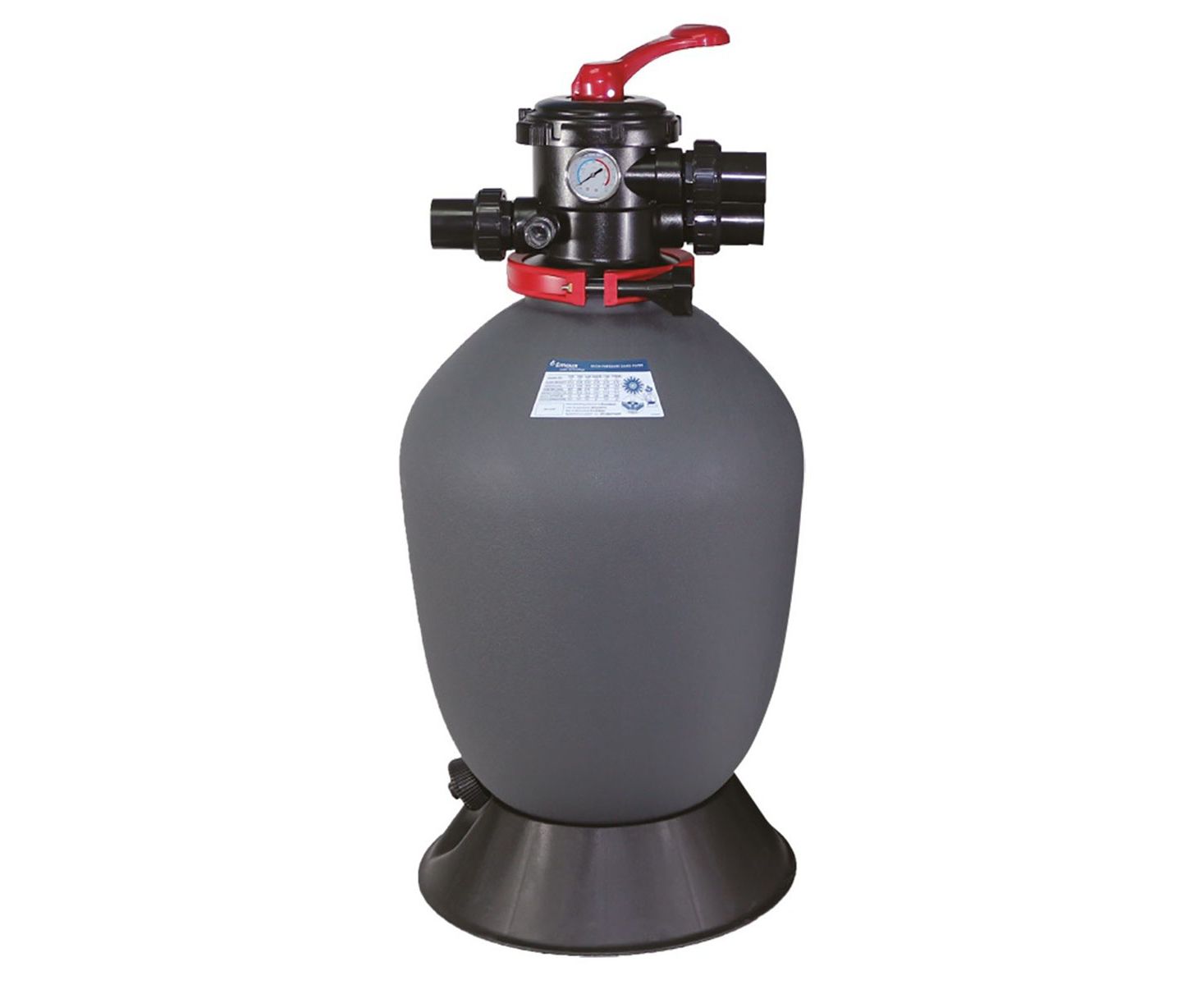 Цельнокорпусной фильтр с шестирежимным вентилем и манометром предназначен для установок очистки воды в небольших частных бассейнах объемом до 32 м³. Резервуар изготовлен из полиэтилена высокой плотности HDPE (High-Density Polyethylene), характеризуется устойчивостью к коррозии и воздействию химически агрессивных сред.
