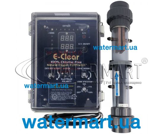 Система E-Clear MK7/CF1-150 генерирует активный кислород, при этом регулирует уровень рН и поддерживает его состояние на отметке 6,8-7,2. Технология E-Clear производит природные окислители из молекул воды и добавляет в нее высокие концентрации кислорода, который дезактивирует содержащиеся в водоеме вирусы, бактерии, плесень и пр. Обеззараживания воды происходит с помощью ионизации меди, благодаря установленным в устройство титановым электродам. Ионизированная медь является полностью безопасной для людей, домашних животных и растений и полностью уничтожает водоросли и вредные организмы. Электронная система окисления, использующаяся в устройстве E-Clear, делает воду мягкой и поддерживает правильный уровень ее щелочности. Система E-Clear состоит из двух основных составляющих - электронный блок управления и две прозрачных ПВХ-камеры. Устройство легко монтируется и удобно в эксплуатации. Генератор кислорода E-Clear MK7/CF1-150 позволяет исключить необходимость использования агрессивных химических веществ и делает воду в вашем бассейне чистой, свежей и безопасной.