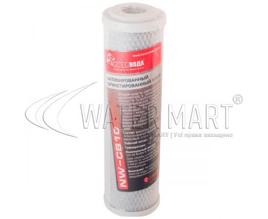 Фильтрующий картридж Новая Вода NW-CB-10 – сменный сорбционный элемент с фильтрующей способностью 5 мкм, в составе которого находится кокосовый прессованный активированный уголь, обеспечивающий грубую (предварительную) механическую очистку питьевой воды в бытовых и хозяйственных системах водоочистки. Используется в магистральных фильтрах и других системах фильтрации и обработки питьевой воды (включая системы обратного осмоса и пр.) для очистки воды от органических химических примесей и хлорсодержащих соединений, устранения неприятного запаха и вкуса воды. Удаляет пестициды, вещества, содержащие нефтепродукты и их производные. Размер картриджа – 10". Номинальный ресурс – 4 тыс. литров (не дольше 6 месяцев). Рабочий поток – до 2 литров в минуту.