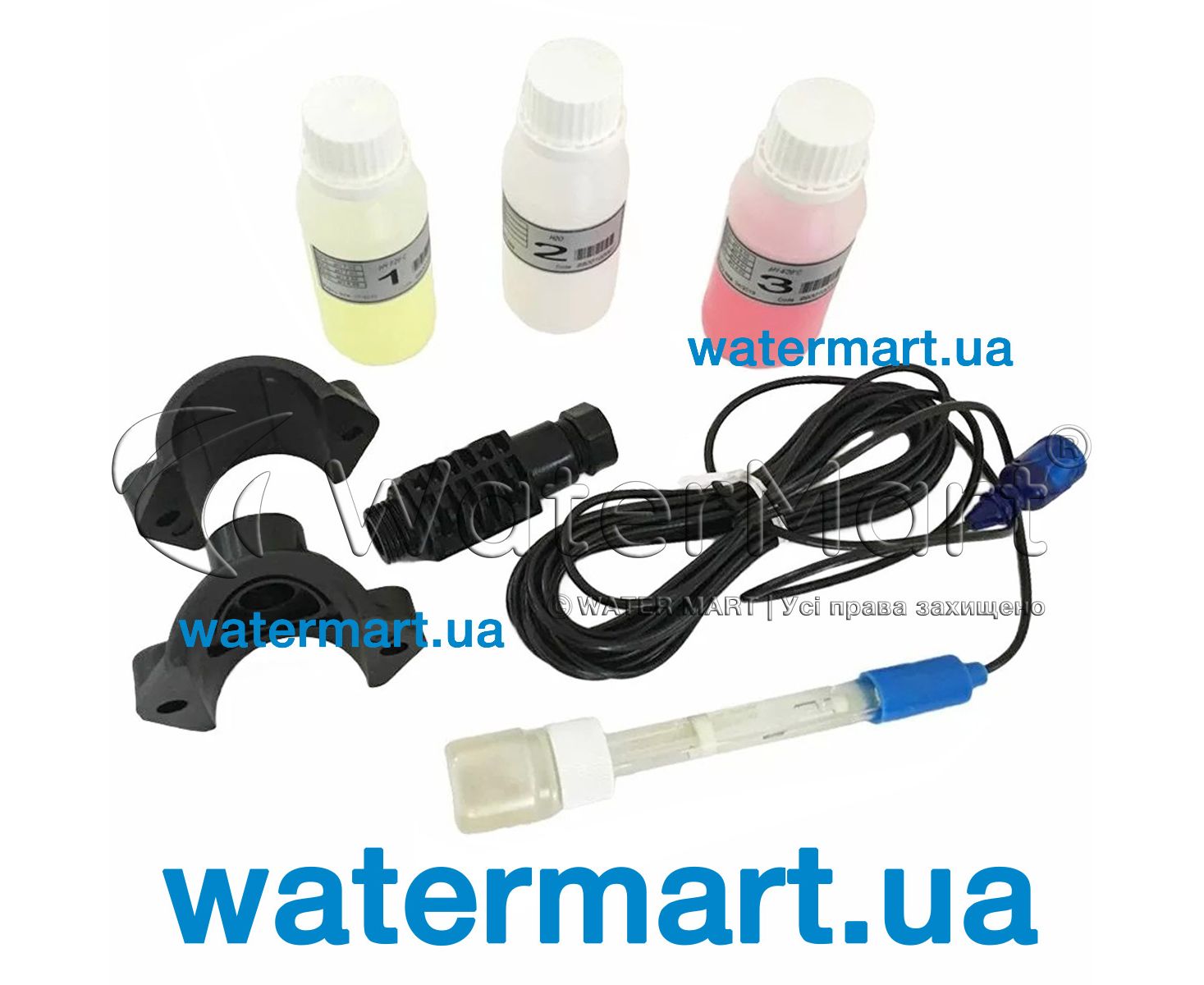 Комплект для определения уровня pH в бассейне Aquaviva | 9900102028. Набор включает: электрод pH; держатель электрода PSS3; калибровочные растворы pH 4 / pH 7; емкость для воды.