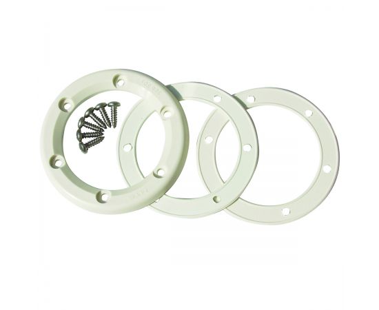 Фланцы выполняют важную функцию – они надежно фиксируют закладные элементы к бортам или дну плавательного бассейна, чтобы те выдерживали высокое давление воды, не давали течи и не пропускали воду (особенно к электрическим сетям). Изготовленные из ABS-пластика лицевые панели не подвергаются коррозии и не деформируются под давлением бетона. Винтовой тип креплений помогает оперативно установить или заменить вышедшие из строя детали.