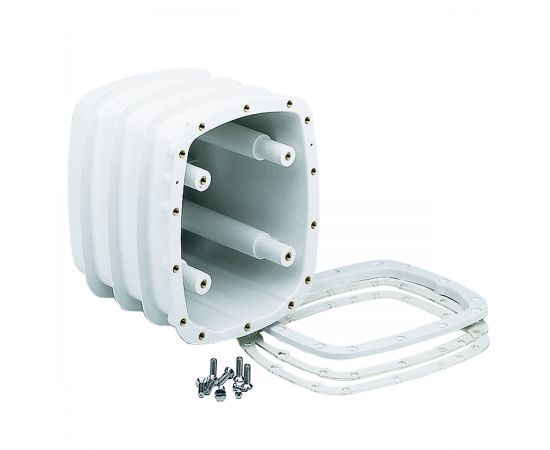Набор фланцев для противотока AstralPool 11503 предназначен для монтажа закладной детали в стену бассейна, облицованного ПВХ-пленкой (лайнером). Элементы изготовлены из ABS-пластика. Материал устойчив к воздействию ультрафиолета и химии для очистки бассейна, отличается прочностью и долговечностью.