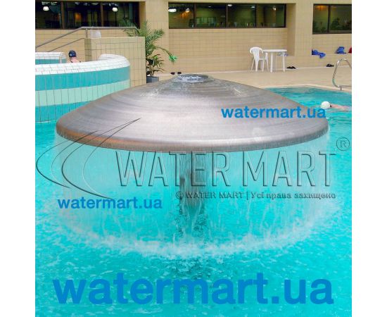 Водный аттракцион для плавательных бассейнов водопад «Водный гриб». Диаметр: 1000 мм. Материал: сталь AISI-316. Мощность: 2,6 кВт.