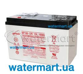 Свинцово-кислотный аккумулятор 100Ah / 12V с полностью герметичным корпусом. Материал корпуса/крышки: огнестойкий полимер UL94-V0.