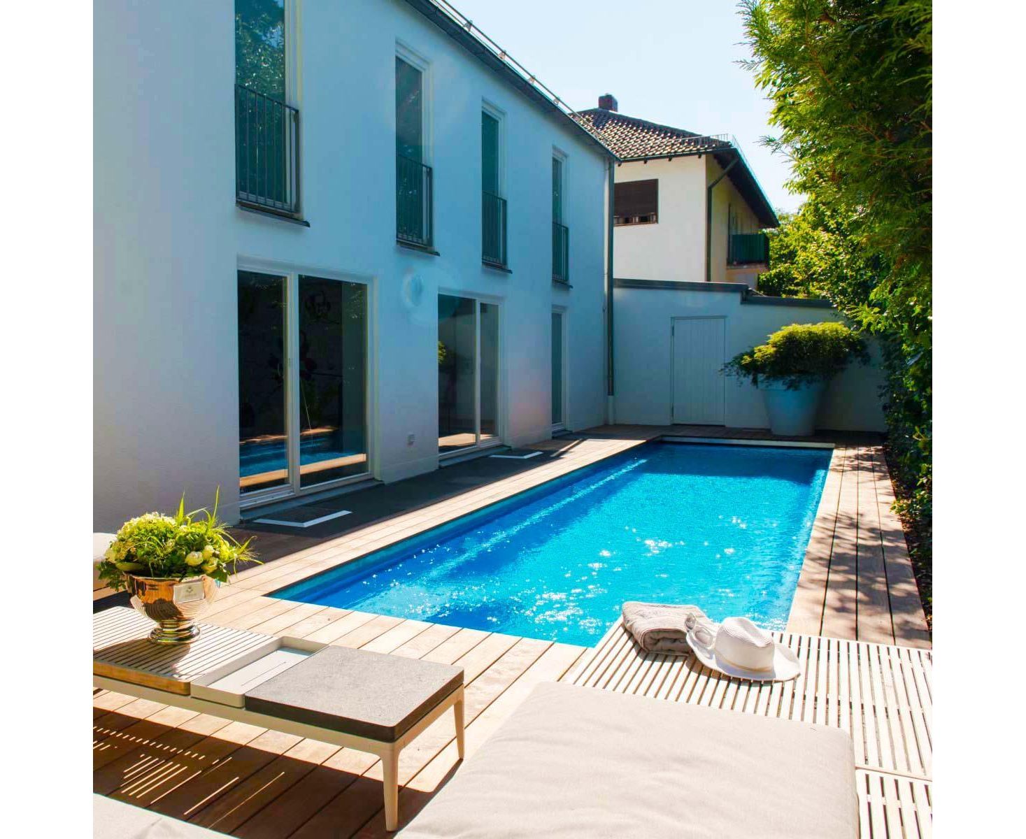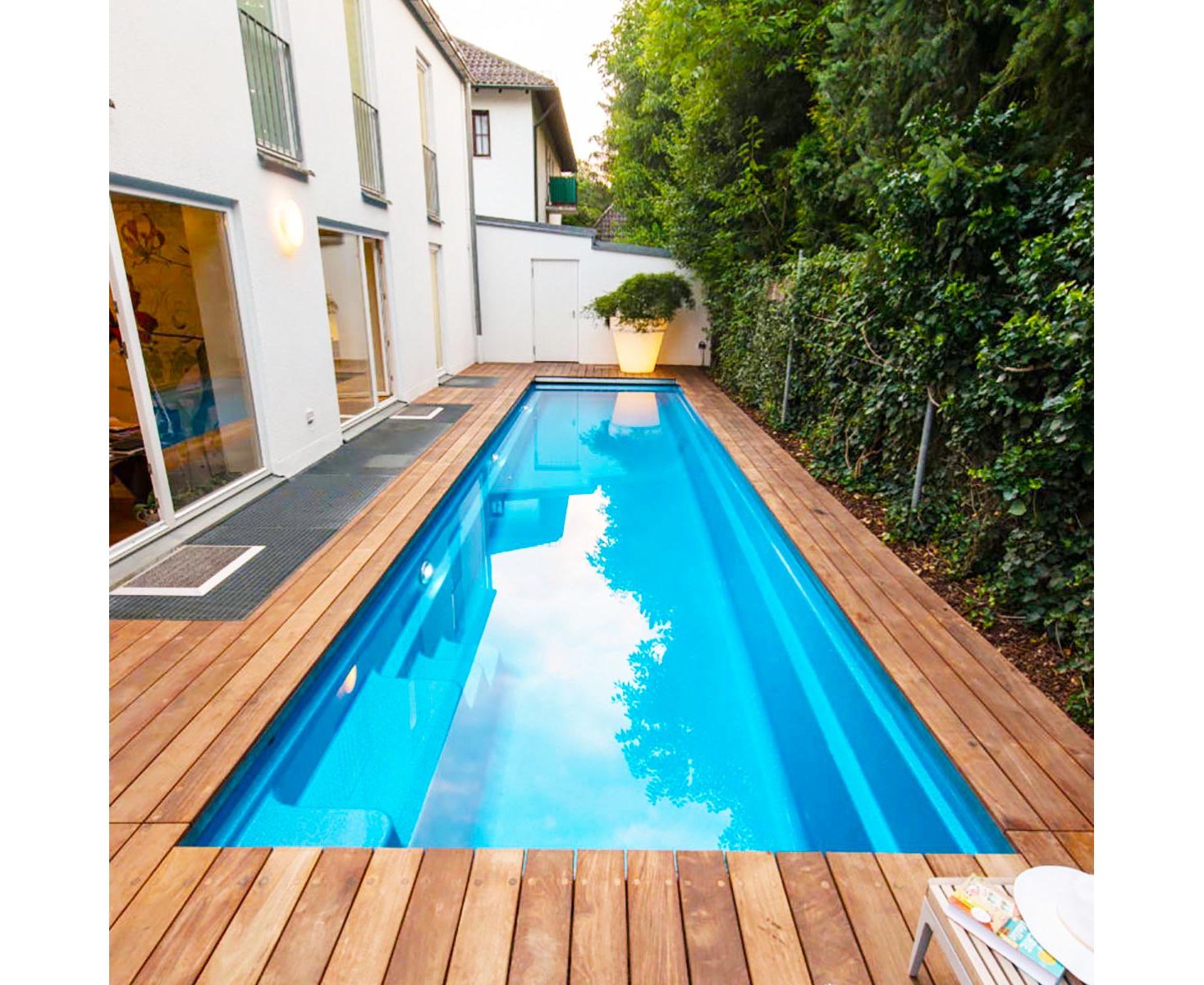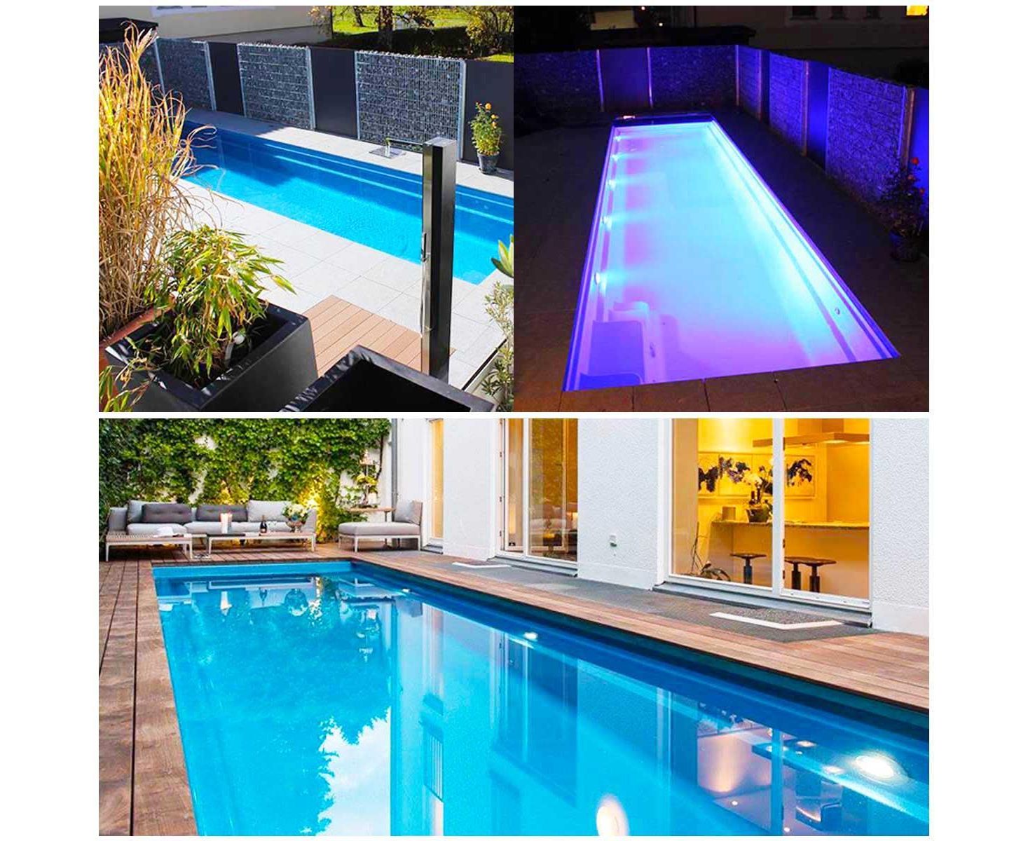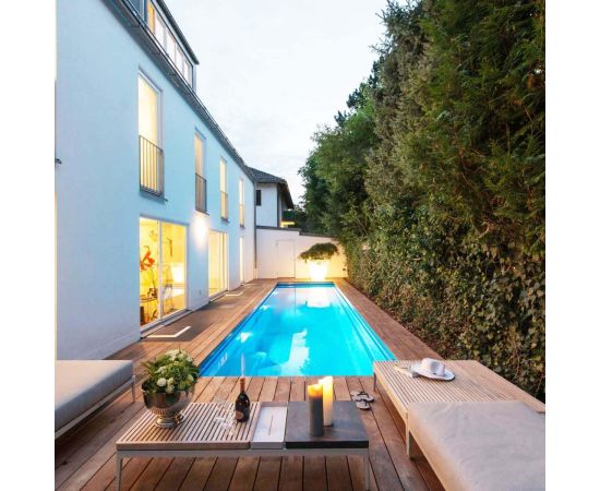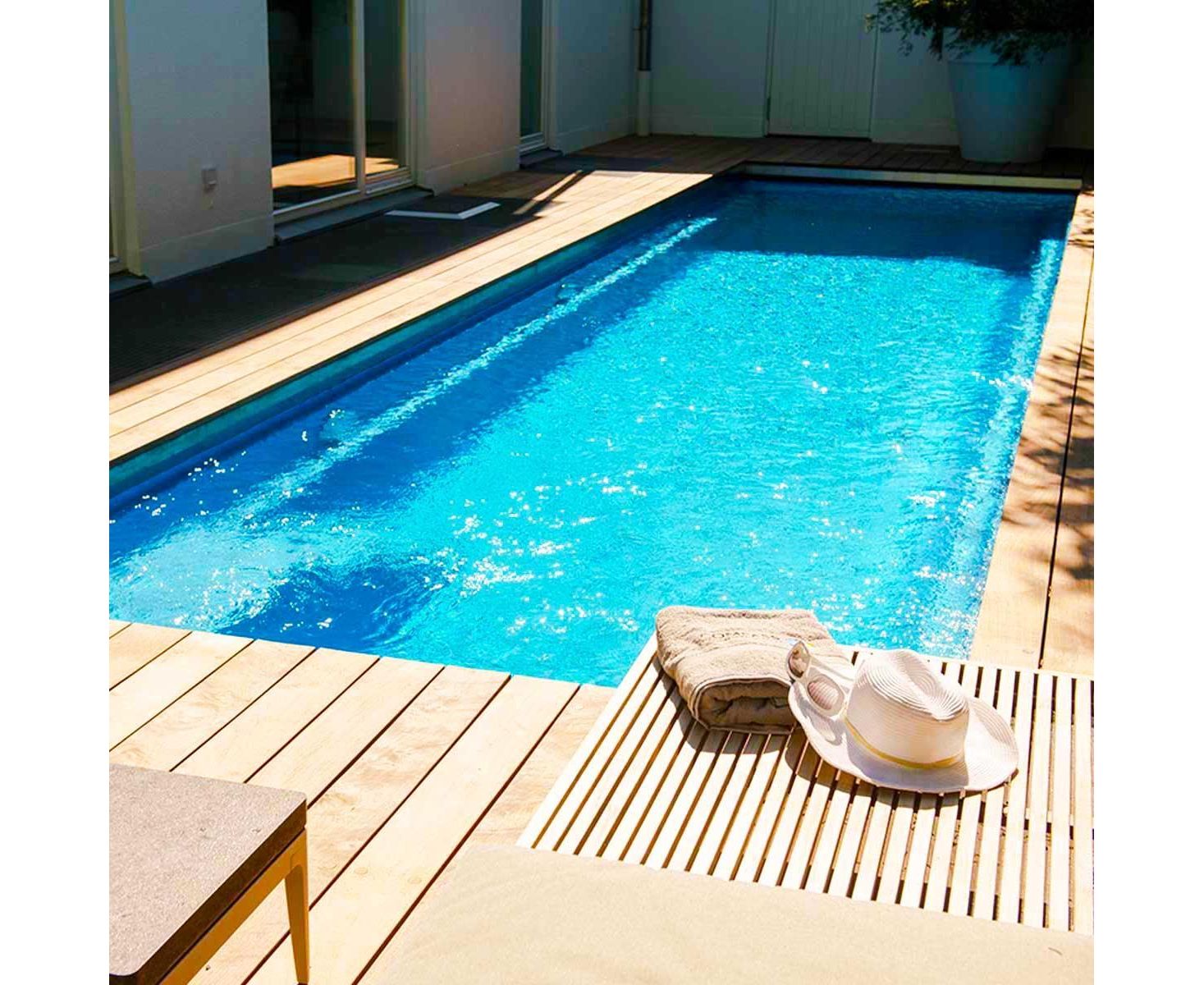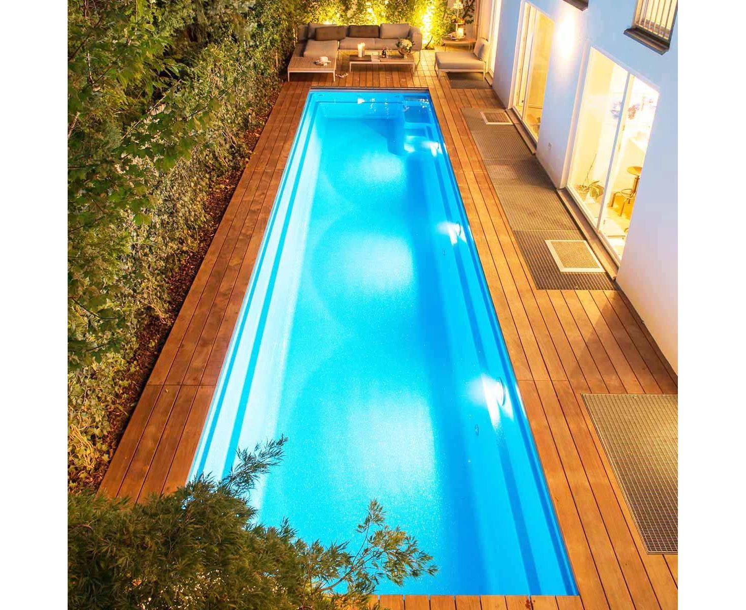 Композитный бассейн длиной 12,2 м с керамическим покрытием чаши. Доступен в 12 различных цветах на выбор.