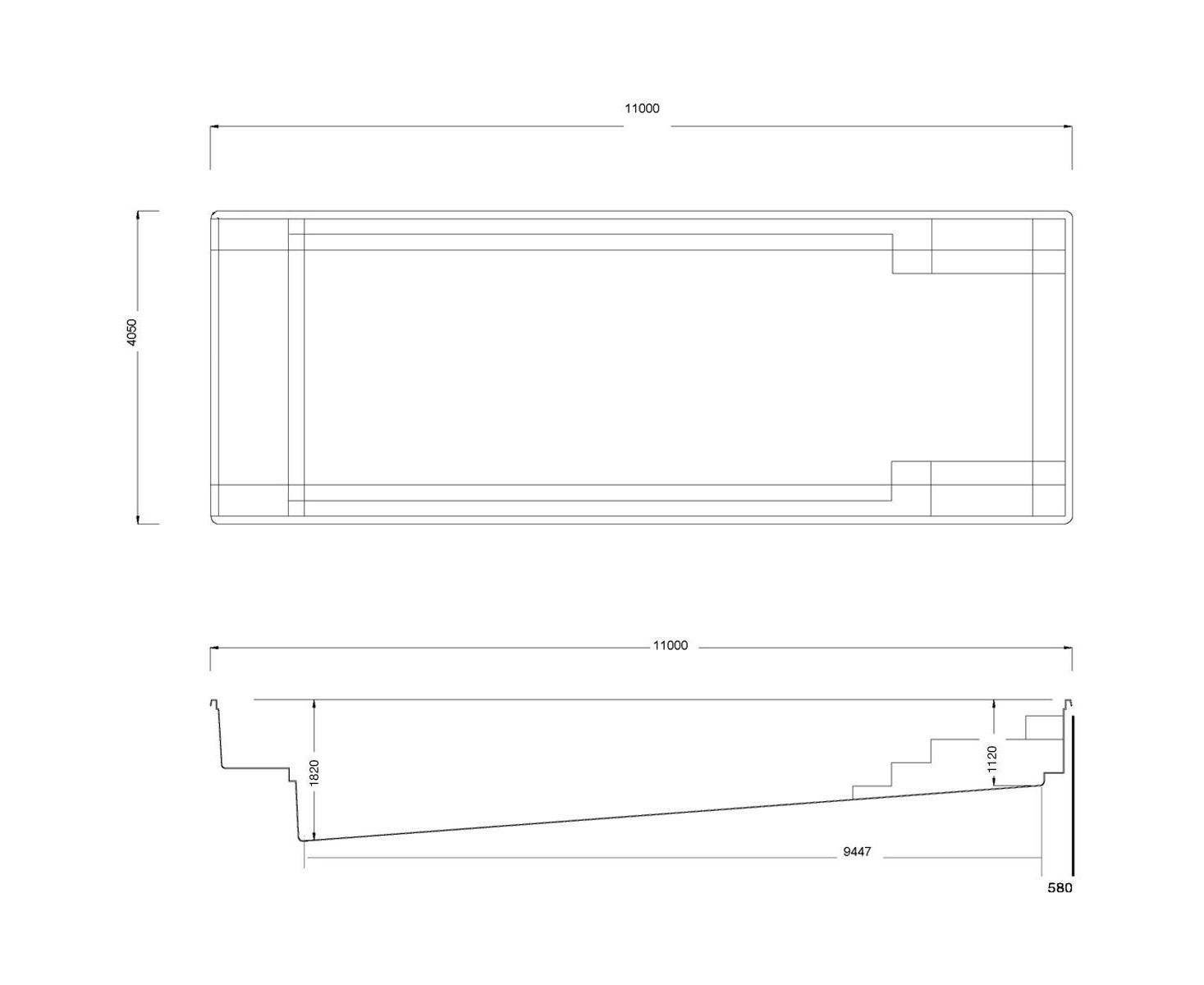 Композитный бассейн Compass Pools XL-Trainer 110 - 11,02 x 4,02 x 1,12-1,82 м
