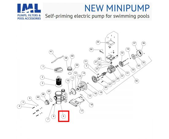 Запасной корпус серии самовсасывающих насосов для плавательных бассейнов производства IML PUMP BODY for New MINIPUMP Swimming Pool PUMP | HD041025. Используется в серии насосов New MP / New MINIPUMP.