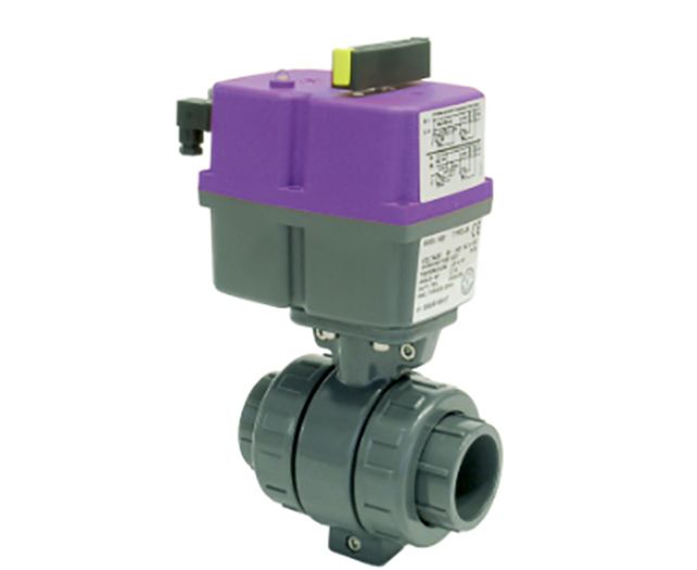 Кран шаровый ПВХ электрический двухходовой с накидными гайками CH - 90-80