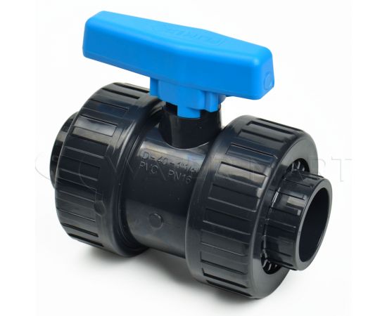 Кран шаровый ПВХ с накидными гайками Plimat - 40 мм
