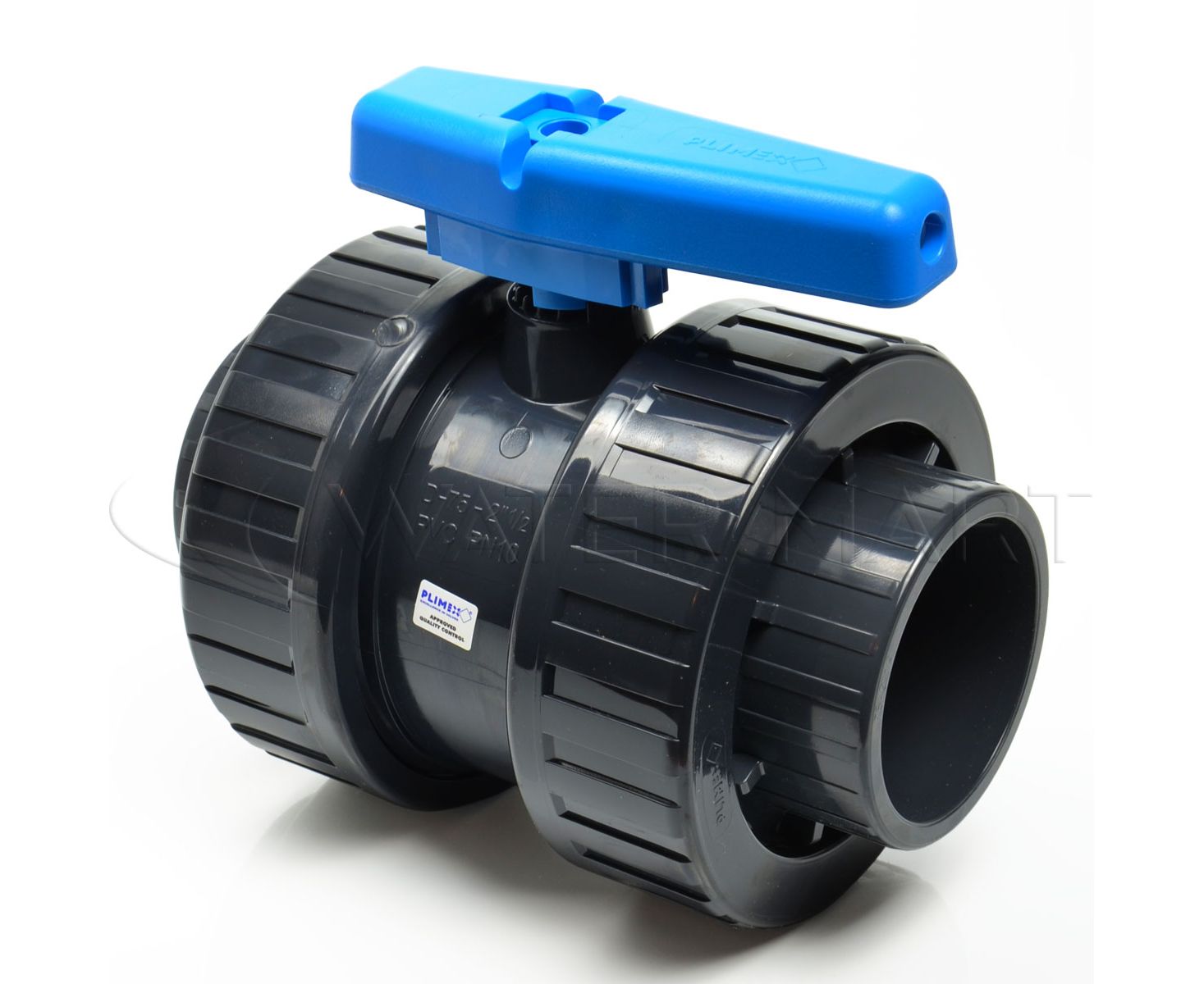Кран шаровый ПВХ с накидными гайками Plimat - 75 мм
