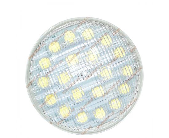 Сменная светодиодная лампа, устанавливается вместо стандартного PAR56 галогенного излучателя 300 Вт в стандартный прожектор для бассейна без каких-либо изменений конструкции, мощность LED лампы 20 Вт / 12 В, 20 светодиодов по 1 Вт каждый.