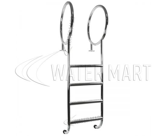 Данная модель лестницы изготавливается под заказ. В зависимости от габаритов бассейна и химического состава воды можно подобрать лестницу, которая будет идеально соответствовать вашим потребностям. Так, для эксплуатации в агрессивной воде, следует обратить внимание на нержавеющую сталь марки AISI 316, для пресной воды подходит сталь AISI 304. Все материалы изготовления имеют высокое качество. Количество ступеней будет зависеть от глубины вашего бассейна.