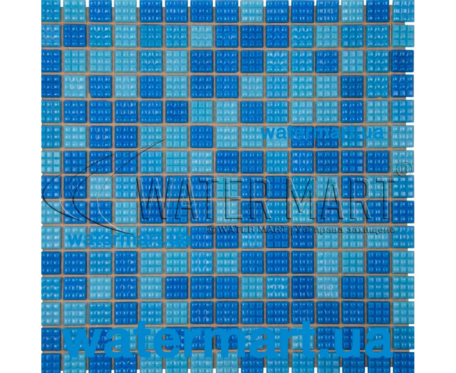 Микс из стеклянной матовой мозаики на бумажной основе. Размер: 20 х 20 мм. Цвет: темно-голубой, голубой, светло-голубой. Упаковка: 20 листов (2,14 м²). Лист: 327 x 327 мм.