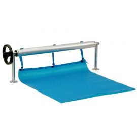 - Пленка для укрытия бассейна и наматывающие устройства. Такое решение считается самым простым и доступным среди прочих материалов для покрытия водного резервуара. Пленка довольно проста в монтаже и неприхотлива в эксплуатации и, к тому же, обладает достаточной прочностью.