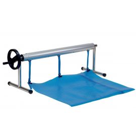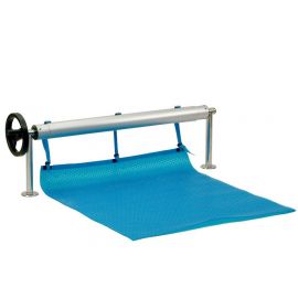 - Пленка для укрытия бассейна и наматывающие устройства. Такое решение считается самым простым и доступным среди прочих материалов для покрытия водного резервуара. Пленка довольно проста в монтаже и неприхотлива в эксплуатации и, к тому же, обладает достаточной прочностью.