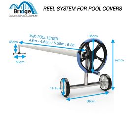 Мобильное наматывающее устройство Bridge PCR08-5x1.3 на колесах с телескопическими штангами (5 шт. по 1,3 м). Применяется для фиксирования солярного покрытия в бассейнах шириной (max) 4,5 / шириной (min) 3 м.