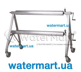 Мобильный наматывающий механизм с высокими стойками (диапазон регулирования по высоте оси вала от 1100 мм до 1500 мм) DEL MANUAL REEL SYSTEMS | VEGA Max W-ENPT0120 | 4-6 x 13 m. Применяется для сматывания / хранения солярной пленки для плавательных бассейнов размером 4,6 х 13 м.