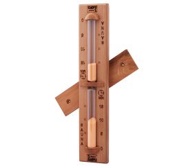 Деревянные песочные часы для сауны с нанесенной временной шкалой для контроля пребывания внутри парной: 5, 10, 15 минут.