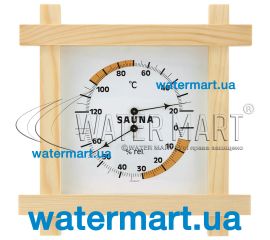Модель термогигрометра для измерения температуры и уровня влажности в саунах и ИК-кабинах. Термостойкий деревянный корпус. Размеры: 220х220 мм.