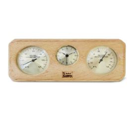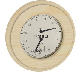 Термометр-гигрометр, применяющийся для измерения температуры и уровня влажности внутри сауны. Материал корпуса: дерево.