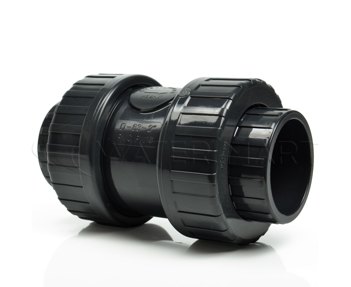 Обратный клапан ПВХ с накидными гайками Plimat - 63 мм