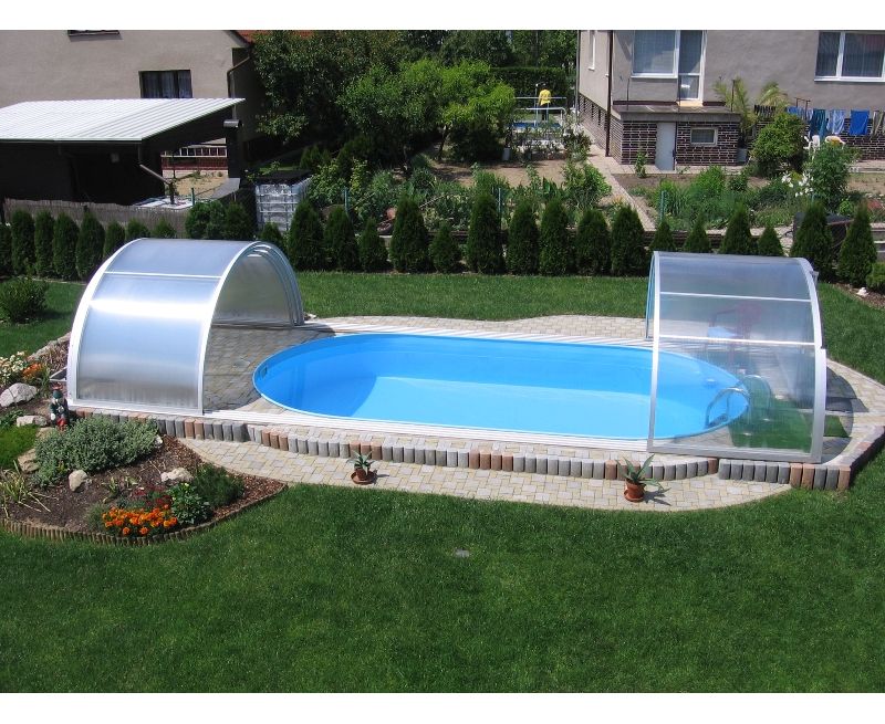 - павильон для бассейна - экономичное и надежное решение для накрытия вашего бассейна. Покатая форма и отсутствие прямых углов препятствует скапливанию снега на поверхности, что положительно сказывается на его надежности и долговечности. Павильон для бассейна превращает открытый бассейн во внутренний и позволяет купаться в нем круглый год. Во время непогоды достаточно просто закрыть павильон и ветер, дождь и даже снег не помешает вам наслаждаться бассейном. Листья, песок, насекомые и прочий мусор больше не будет попадать в бассейн, что позволит сохранить воду чистой весь год. За счет отсутствия испарения затраты на химию также уменьшаться. Структура павильона поддерживает постоянную температуру воды и сокращает затраты на обогрев бассейна.