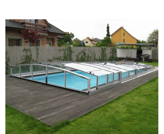 Самый низкий раздвижной павильон для бассейна от компании Watermart. Идеальное решения для клиентов желающих сохранить вид своего двора при этом все еще сохраняя возможность плавать под ним. Также как и с другими моделями низких павильонов для входа внутрь достаточно просто сдвинуть дверь в сторону, без необходимости нагибаться.