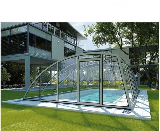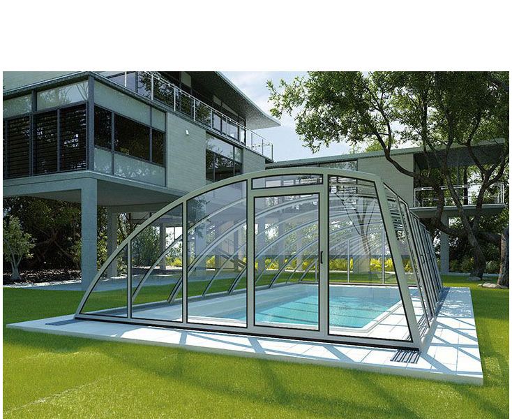 Павильоны для бассейна серии Monaco просторны и надежны, благодаря чему в нем комфортно себя чувствуют даже люди высокого роста. Пологая стенка не позволяет образовываться скоплению снега в зимний период. Использование павильона обеспечивает автоматическую защиту бассейна от любых погодных явлений, а также предотвращает попадание различного, принесенного ветром мусора в воду. Также на двери и секции павильона устанавливаются алюминиевые замки для обеспечения дополнительной безопасности конструкции. Выполненные из поликарбоната секции гарантируют защиту от УФ лучей и обеспечивают поддержание комфортной температуры воды, что приводит к экономии на химических средствах и электроэнергии на ее обогрев.