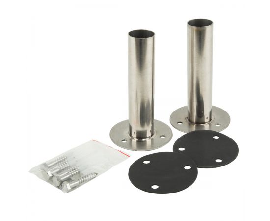 Переходник изготовлен из высококачественной полированной нержавеющей стали марки AISI 304 (под заказ - AISI 316 для соленой воды). Нержавеющий патрубок с фланцем, диаметр - 39 мм. Применяется для крепления любых навесных нержавеющих лестниц. В комплекте резиновая подкладка, закрывающая место крепления переходника к полу и три нержавеющих анкера. Для установки лестницы необходимо два переходника.