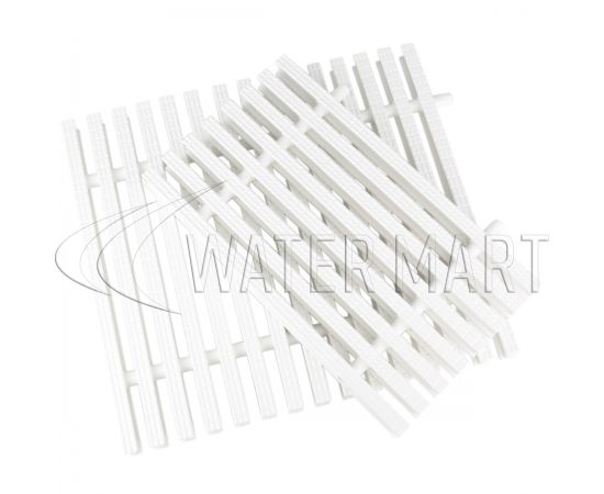 Переливная решетка Tebas имеет ширину – 298 мм, высоту – 24 мм. Решетка изготовлена из ABS-пластика. Данный материал отличается тем, что он нетоксичный, долговечный, влагостойкий, а также стойкий к моющим средствам, чем облегчает уход за ним. Решетка изготовлена из белого пластика. Верхняя часть решетки препятствует скольжению, что делает нахождение возле бассейна гораздо безопасней, в том числе и для детей.