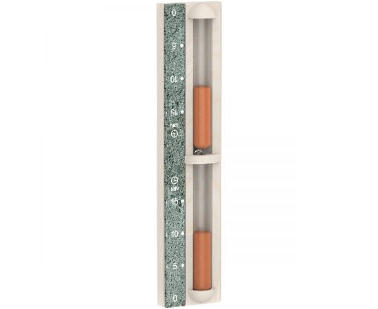 - Удобство использования. Часы содержат песок, окрашенный в яркий кирпичный цвет, что позволяет отчетливо видеть прошедшее время сеанса в кабине даже на значительном расстоянии от устройства. Отдельно на корпусе находится временная шкала, рассчитанная на 15 минут, выполненная из мыльного камня. Такая шкала устойчива к истиранию и не запотевает.