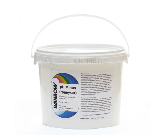 Растворять pH Minus Rainbow (гранулят) только в пластиковой таре. Размешивать до полного растворения при помощи пластикового или деревянного предмета.