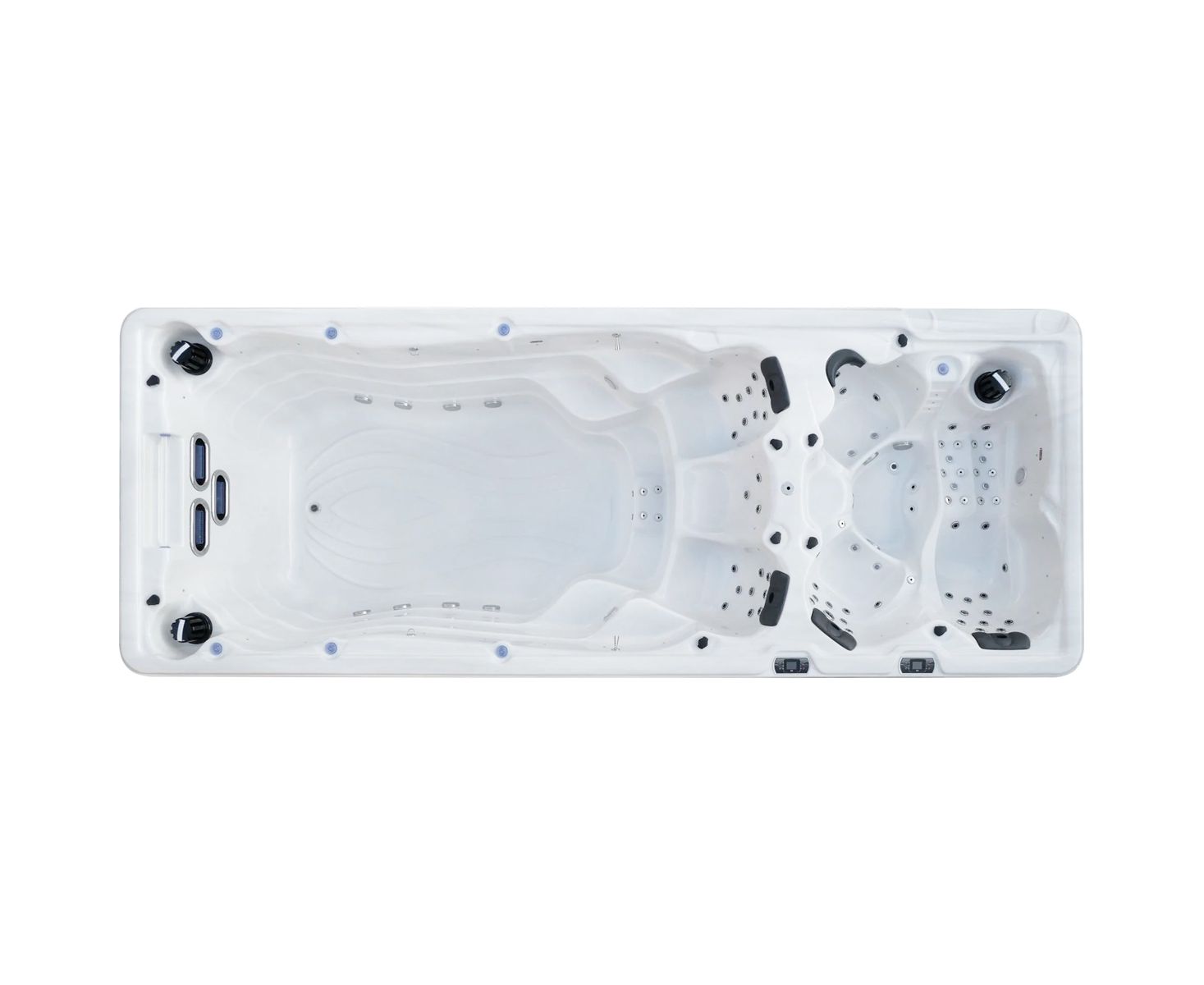 - Количество форсунок – всего 92 шт. (включая 8 аэро форсунок в гидромассажной зоне и 3 регулируемые форсунки противотока в зоне для тренировок)