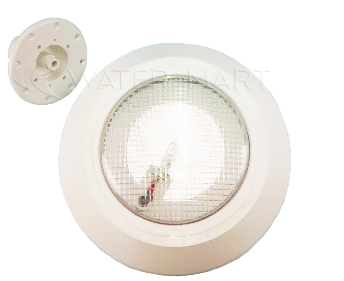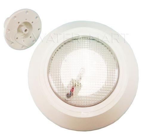 Галогенный накладной прожектор предназначен для размещения в бассейнах, облицованных лайнером (ПВХ-мембраной). Материал изготовления - ABS-пластик. В комплекте к прожектору предусмотрена закладная ниша под лайнер. Мощность галогенной лампы - 100 В. Напряжение - 12 В.