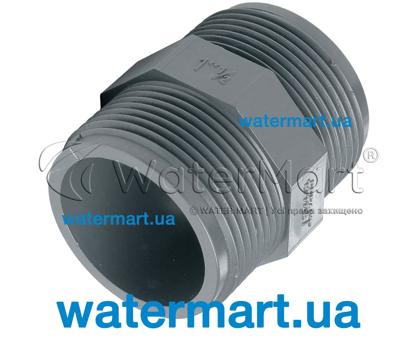 Резьбовая редукция / Ниппель переходной (резьба: 1½") EFFAST PVC-U BSPP threaded fittings | HEXAGON NIPPLE RERNIE050F. Применяется для транспортировки жидкостей до +60 °C в плавательных бассейнах, бытовых и промышленных системах ПВХ-трубопровода. Материал: PVC-U.