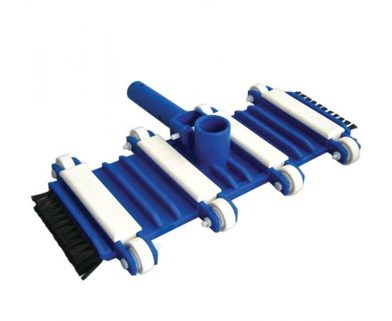 Щетка для очистки дна бассейна от различных видов загрязнений. Имеет боковой ворс. Гибкий корпус щетки позволяет с легкостью очищать неровные или скругленные поверхности в бассейне. Ширина щетки - 38 см.