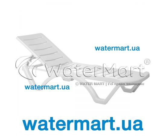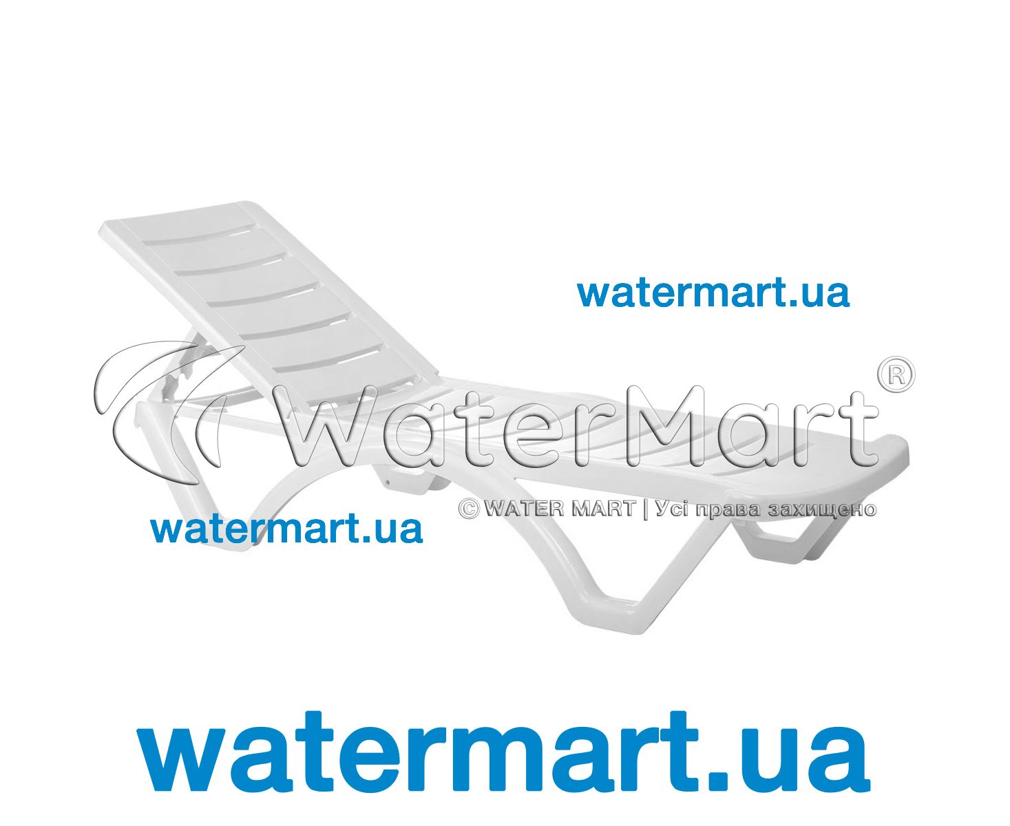 Шезлонг для бассейнов серии Aqua с регулируемой спинкой (5 положений) и двумя «потайными» колесиками. Материал: высокопрочным пластик, устойчивый к УФ-излучению. Цвет: белый. Размеры: 187 х 41 х 30 см. Максимальная нагрузка: до 250 кг.