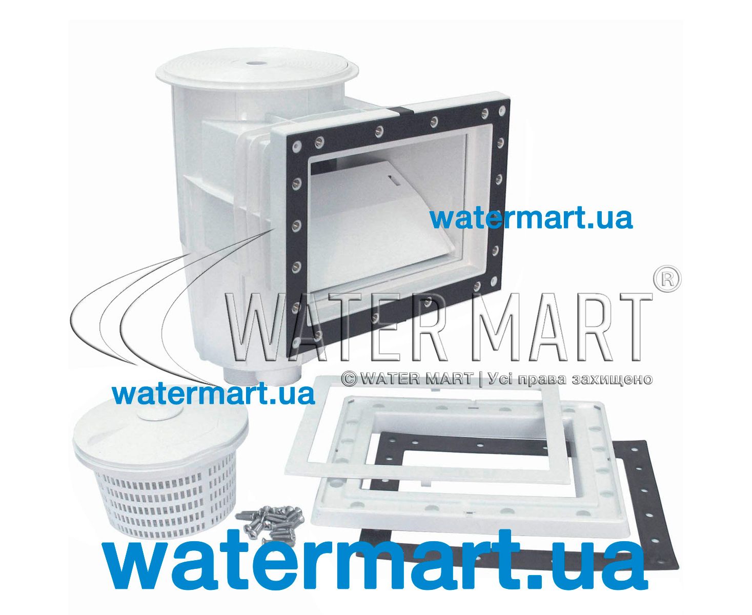 Производитель оснастил скиммер горизонтальным удлинителем – деталью, которая позволяет увеличить ширину водозаборного отсека на 63,5 мм. Такая возможность весьма удобна в случаях, когда скиммер устанавливается в чаши бассейнов с усиленными бортами или были допущены огрехи при заливке каркаса. Корпус из прочного противокоррозионного ABS-пластика имеет дополнительный разъем для аварийного перелива воды при внештатных ситуациях.