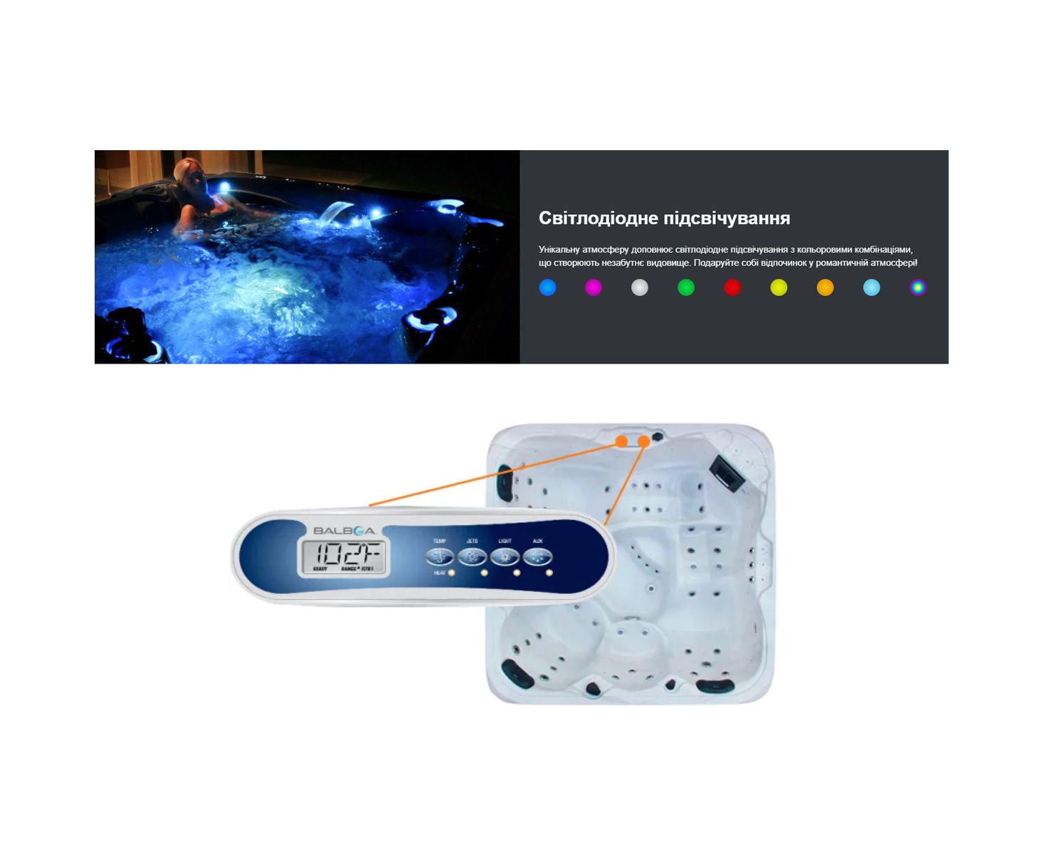- Электронная система управления Balboa BP6013G1 + TP500S (США) обеспечивает комфорт и простоту пользования