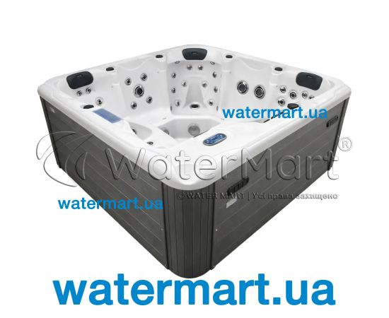 Hydromassage SPA-pool Aquajoy Santorini Silver White Marble | AJ-1001NSW 220 x 220 x 95 cm – гидромассажный СПА-бассейн премиум-класса с вместительной плавательной чашей на 5 мест (3 сидения / два лежака), выполненной из прочного высококачественного американского акрила ТМ Aristech® Acrylic.