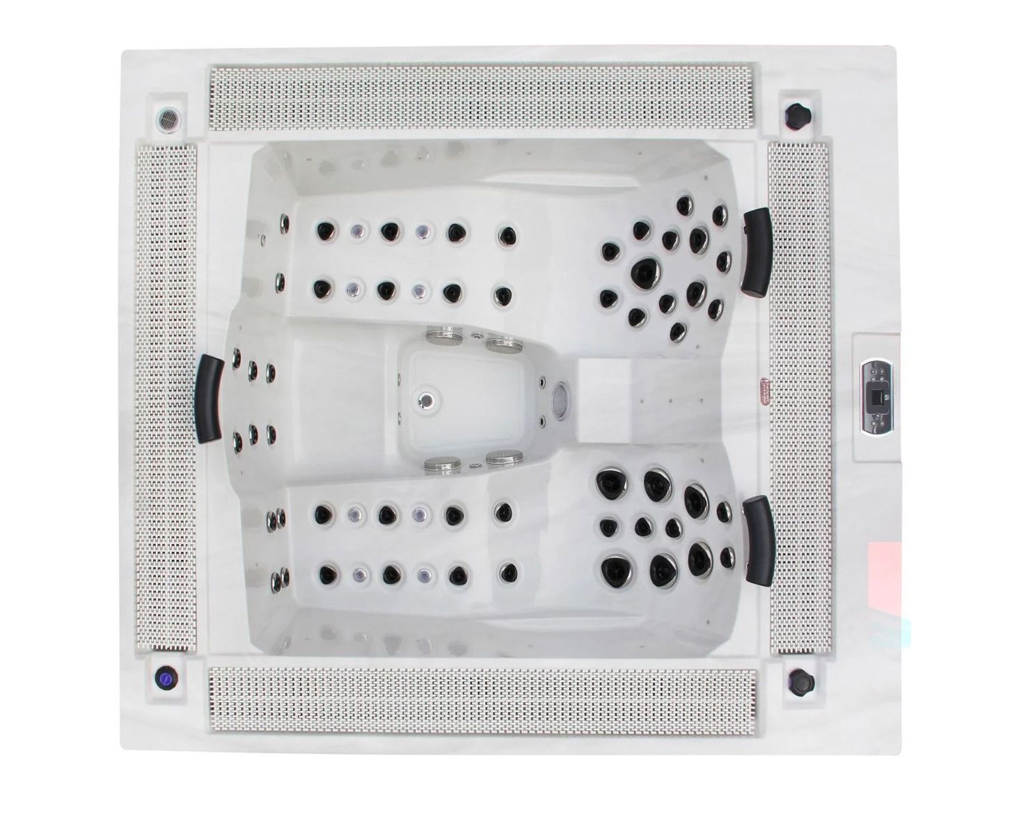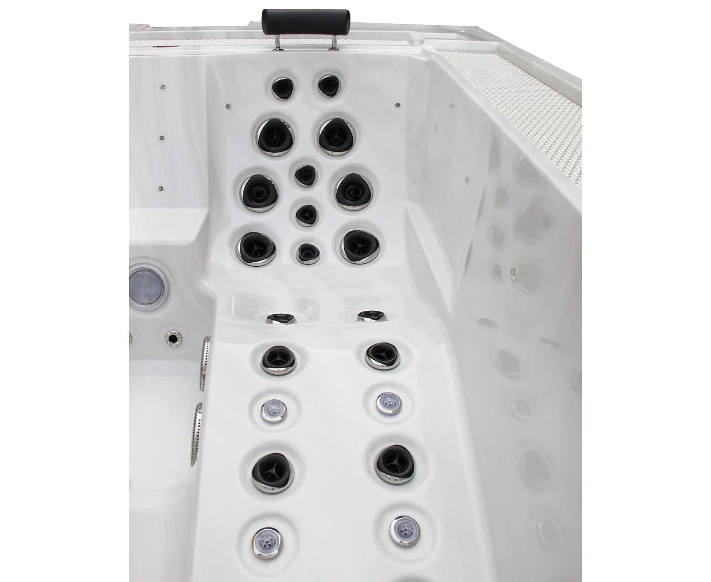 • Форсунки – всего 67 шт. (53 гидромассажные, 6 циркуляционных и 8 аэрофорсунок), в том числе форсунки направленного потока и вращающиеся