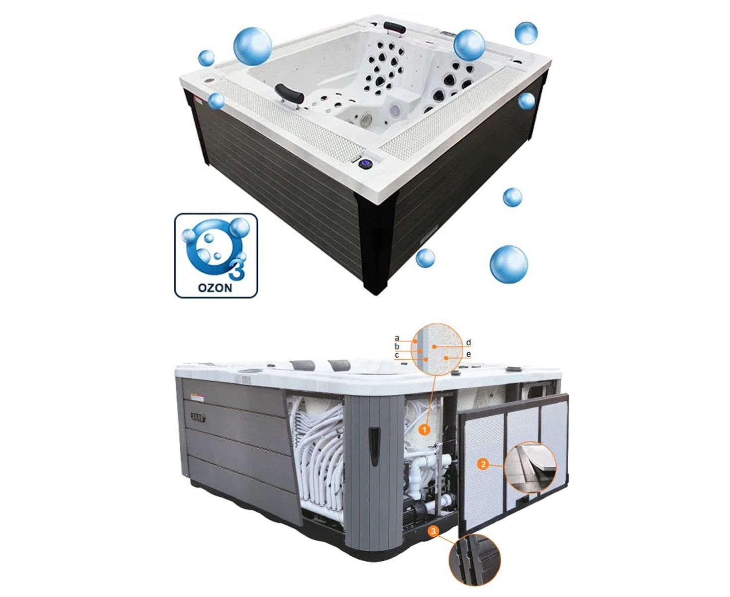 • Чаша СПА-бассейна – акрил толщиной 8 мм ТМ Aristech® Acrylic (США) с утеплением из пенополиуретана высокой плотности